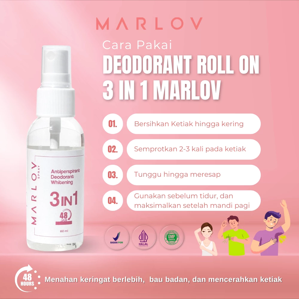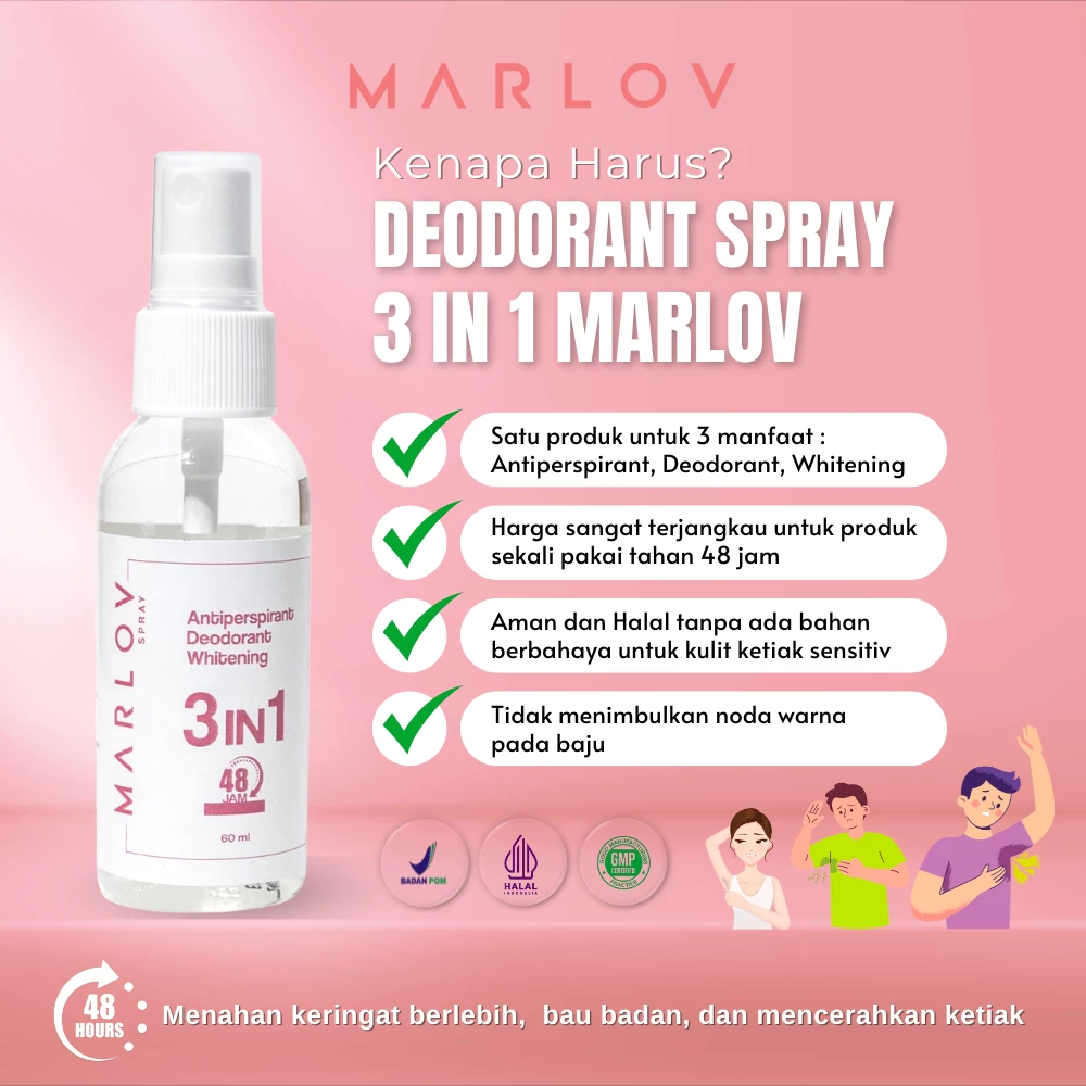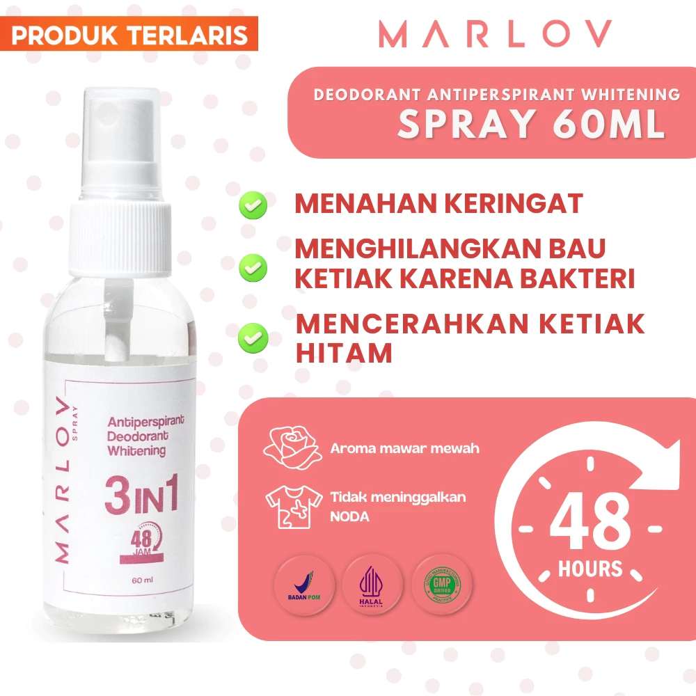 MARLOV Antiperspirant Deodorant Whitening 3in1 Spray Semprot Tahan 48Jam Anti Bau Ketiak 60ml
